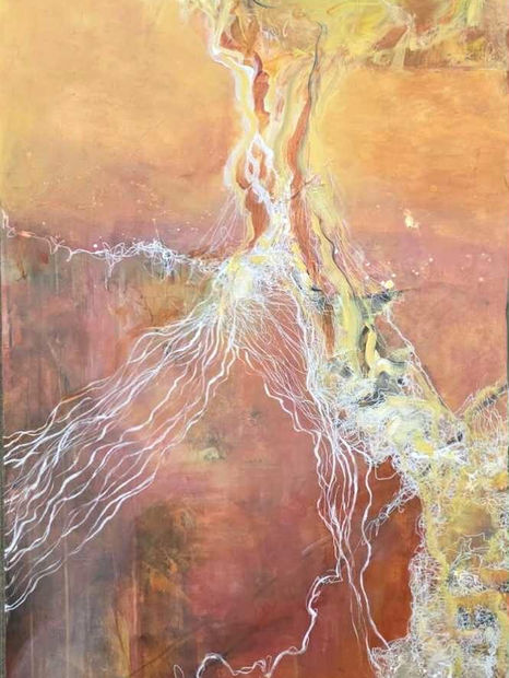 Unexpectedly, the fine white lines from the pen and some with a paintbrush, wanted to be long and continuous rather than contained within a small space. It was exciting, as exciting as being connected with our own source directly and being able to stay self referencing even with all that comes at us throu "live streaming" on the media channels.